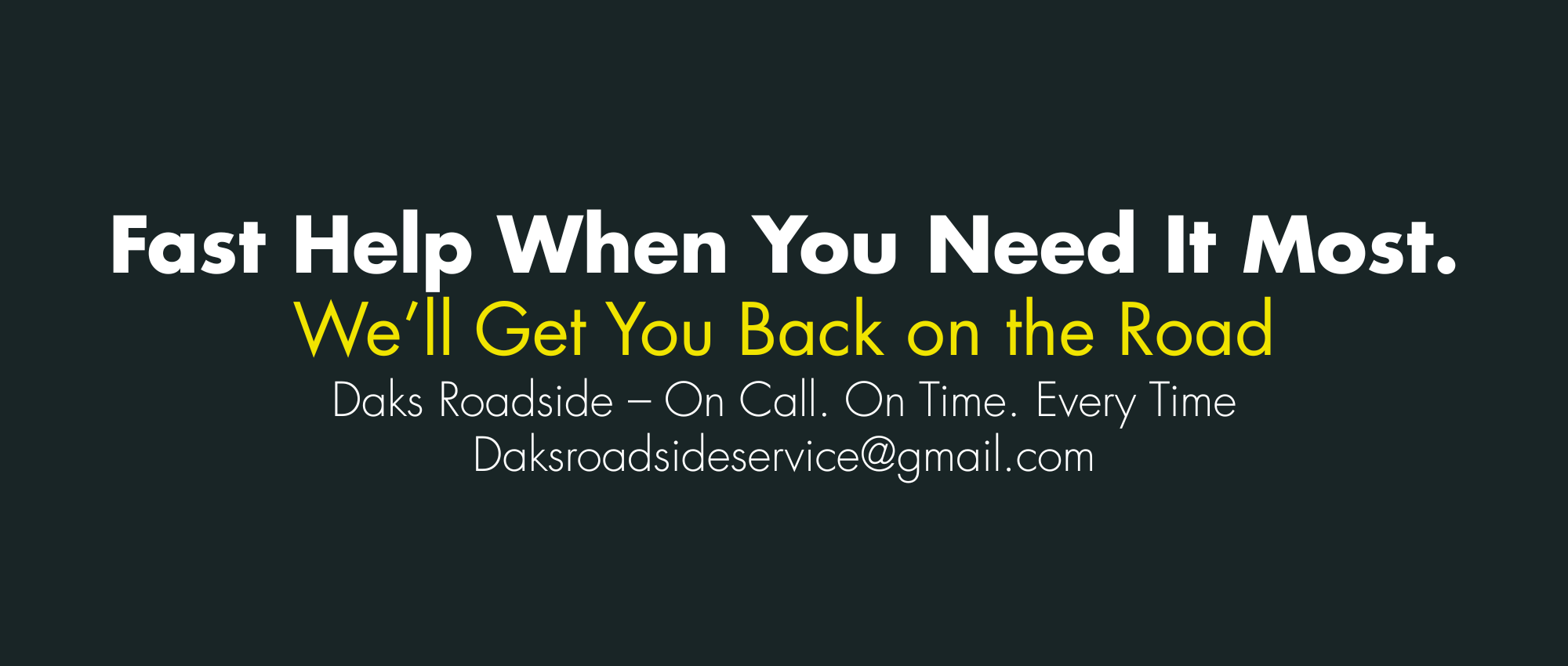 When you’re stranded, every minute counts. Daks Roadside provides quick response times and 24/7 service so you’re never left waiting. From tire changes to jump-starts, we’ll get you moving again fast—anytime, anywhere.